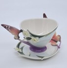 Franz Porcelain Butterfly Cup & Saucer Sculpted Floral Art Nouveau NIB Orange