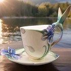 Franz Collection Hummingbird & Blue Iris Porcelain Cup & Saucer Set FZ00129